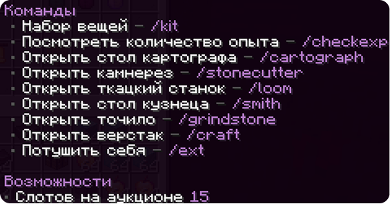 Доступ к дополнительным командам, улучшенные киты и бонусы в экономике.